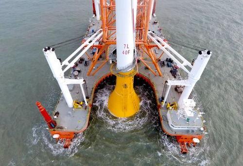 塔架是风机的“骨架”,它的安装过程同样复杂。视频中,工人们正在用吊车将塔架缓缓升起,然后精准地安装在承台上。这个过程需要精确的指挥和默契的配合。