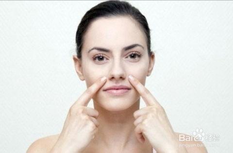 1. 从鼻翼两侧开始,用指腹轻轻向上提拉,直到颧骨。