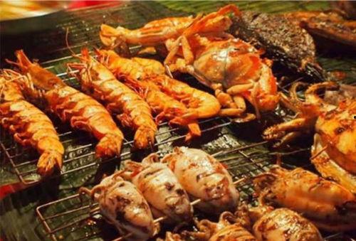 2. 海鲜:烤鱼、烤虾、烤蟹等。